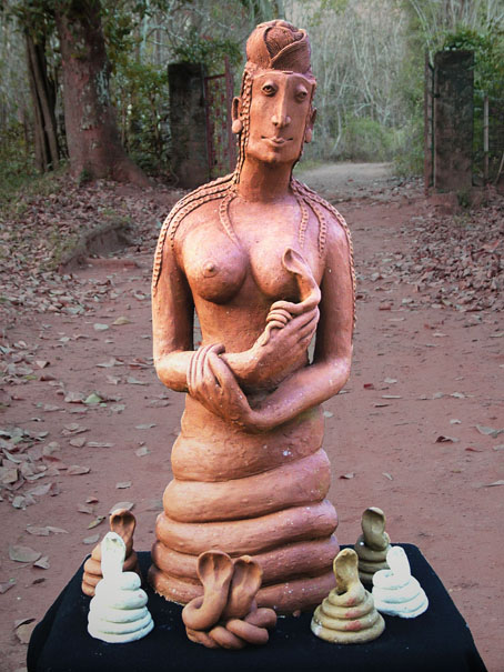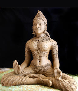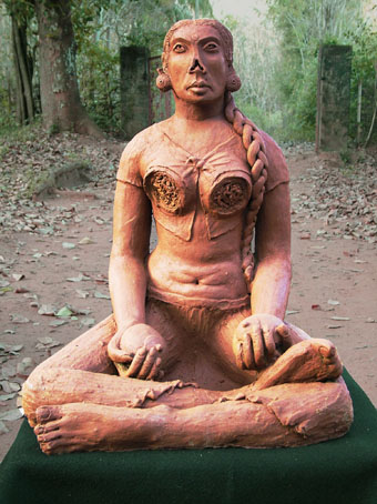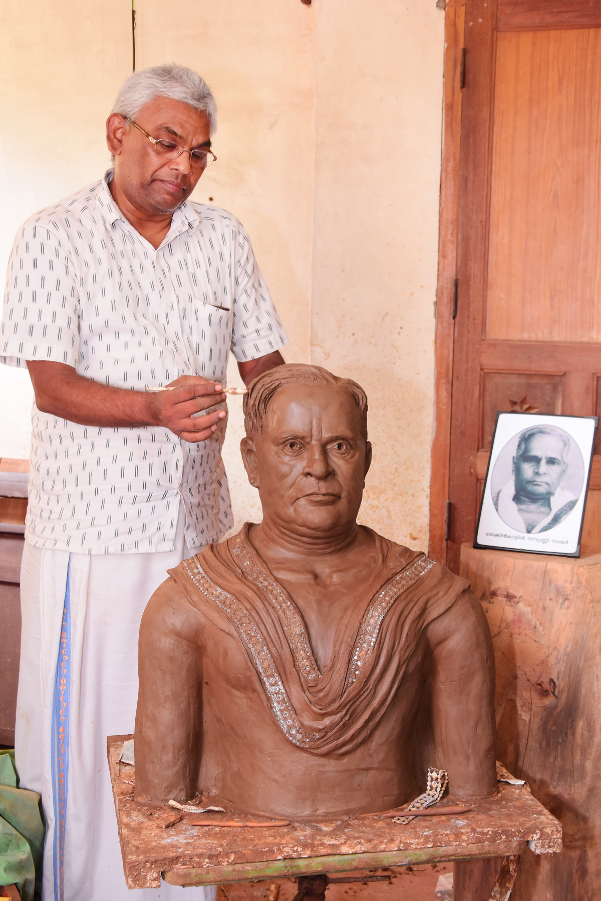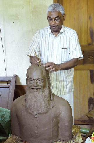 Sri. Sadanam K. Harikumaran is a known sculptor and painter. He has had serious exposure to the possibilities of sculpture and portraits when he was Professor of Kathakali at Santiniketan Viswabharathi (established by Nobel laureate Rabindra Nath Tagore). He has conducted a number of single and group exhibitions including one with the financial assistance of Kerala Lalith Kala Academy. A number of sculptures made in terracotta have been preserved in the art gallery of Gandhi Seva Sadanam auditorium. His famous installation, "Salabhanjikas" (which has got statues of 40 lantern-bearing maidens) adorn the Sadanam auditorium. |